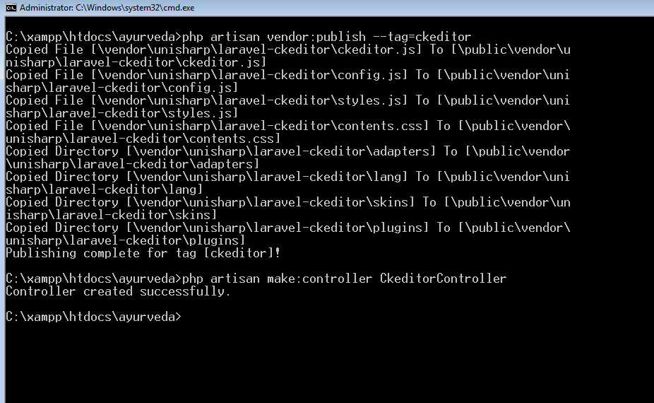php artisan vender:publish –tag=ckeditor